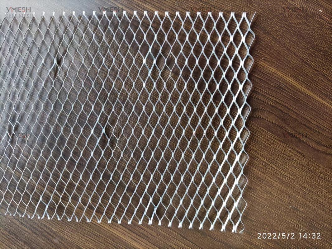 A malha de metal expandido galvanizado (também conhecida como malha de estuque ou malha de gesso) é feita de bobinas de chapa de aço, cortadas e expandidas em um padrão de espinha de peixe com nervuras de metal que percorrem aproximadamente a cada 3 polegadas ao longo do comprimento da chapa.